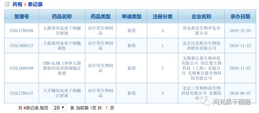 2018年,我國CFDA重新放開細(xì)胞產(chǎn)品的注冊申請,邁出了歷史性的一步。我國MSCs新藥注冊見下表: